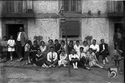 Grupo de oscenses en un pueblo. Ildefonso San Agustín. Agüero