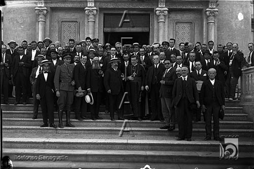 Grupo de autoridades en las escaleras del Casino. Ildefonso San Agustín. Huesca
