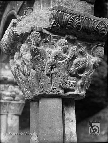 Monasterio Viejo de San Juan de la Peña. Claustro. Capitel con escena de la Entrada de Jesús en Jerusalén. Ricardo del Arco y Garay. Botaya