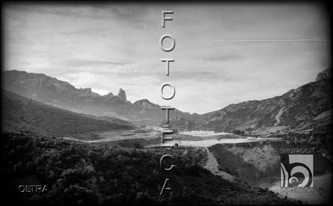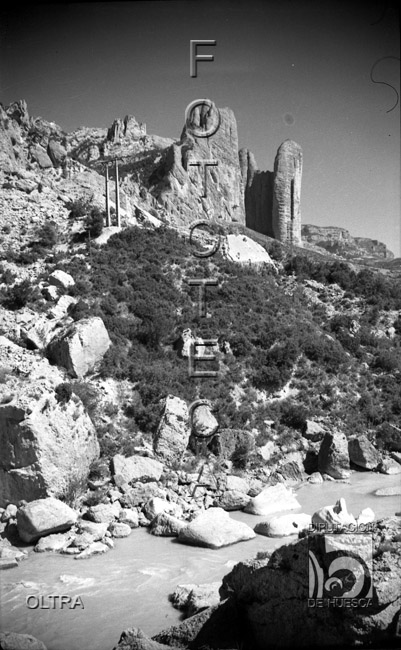 "En el Salto de Roldán . Al fondo la Peña del Mediodia (El Picón)". José Oltra Mera. Apiés