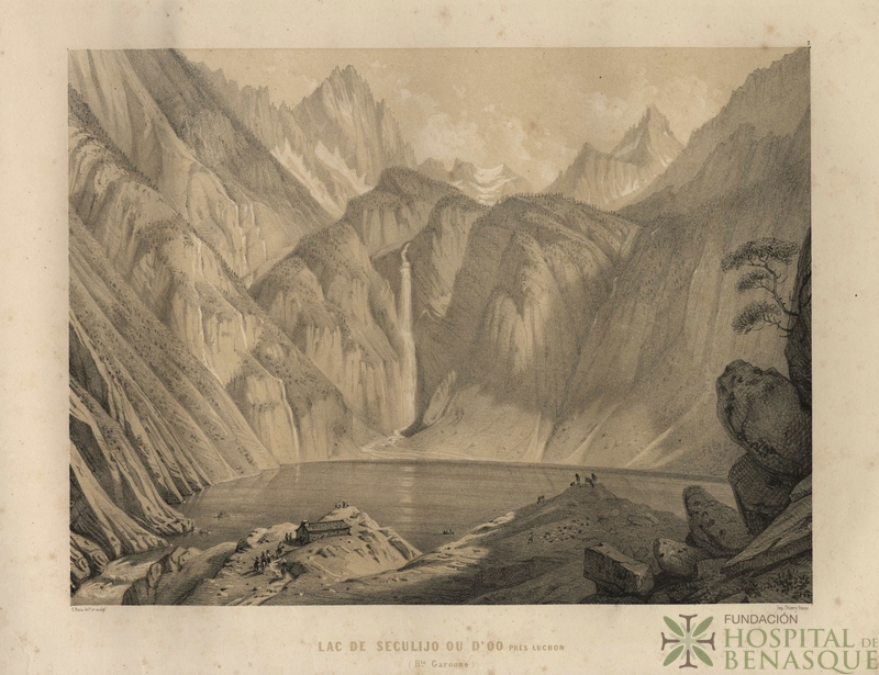 "Lac de Seculijo ou d'Oo près Luchon. E. Paris del. Et sculp. Imp. Thierry Frères."